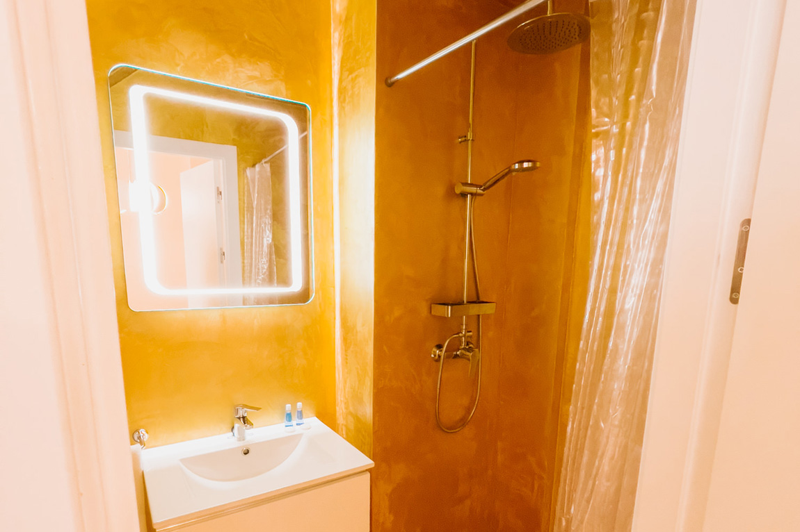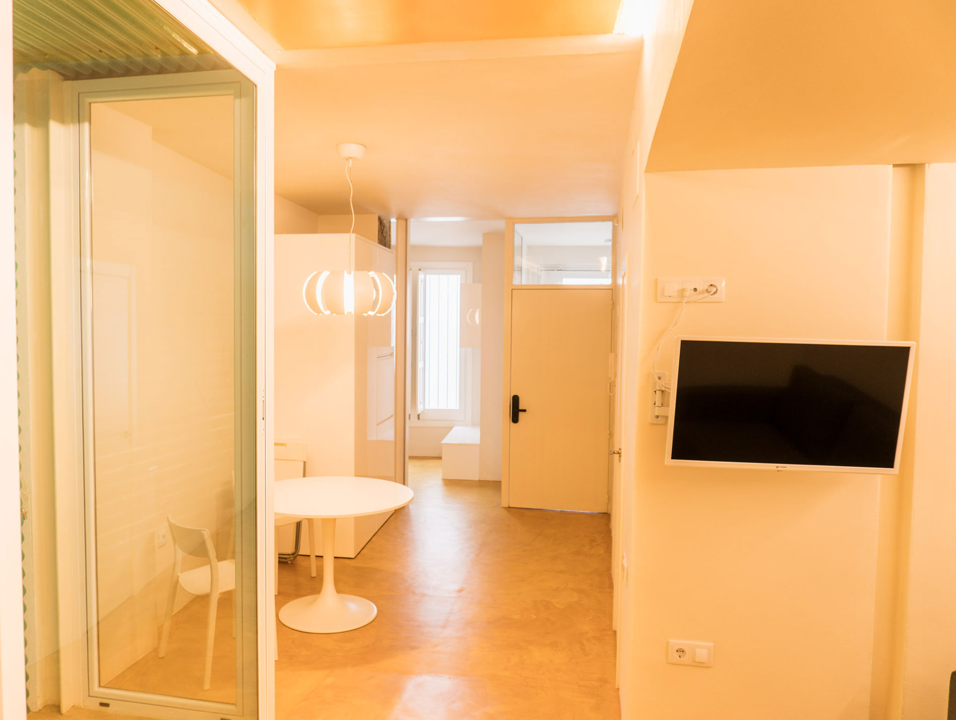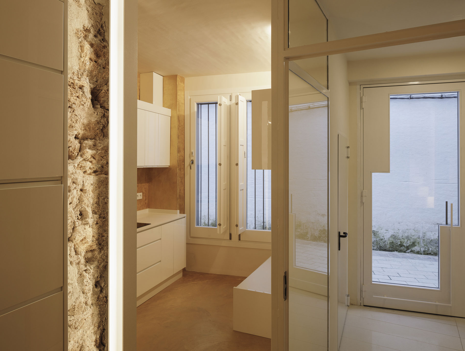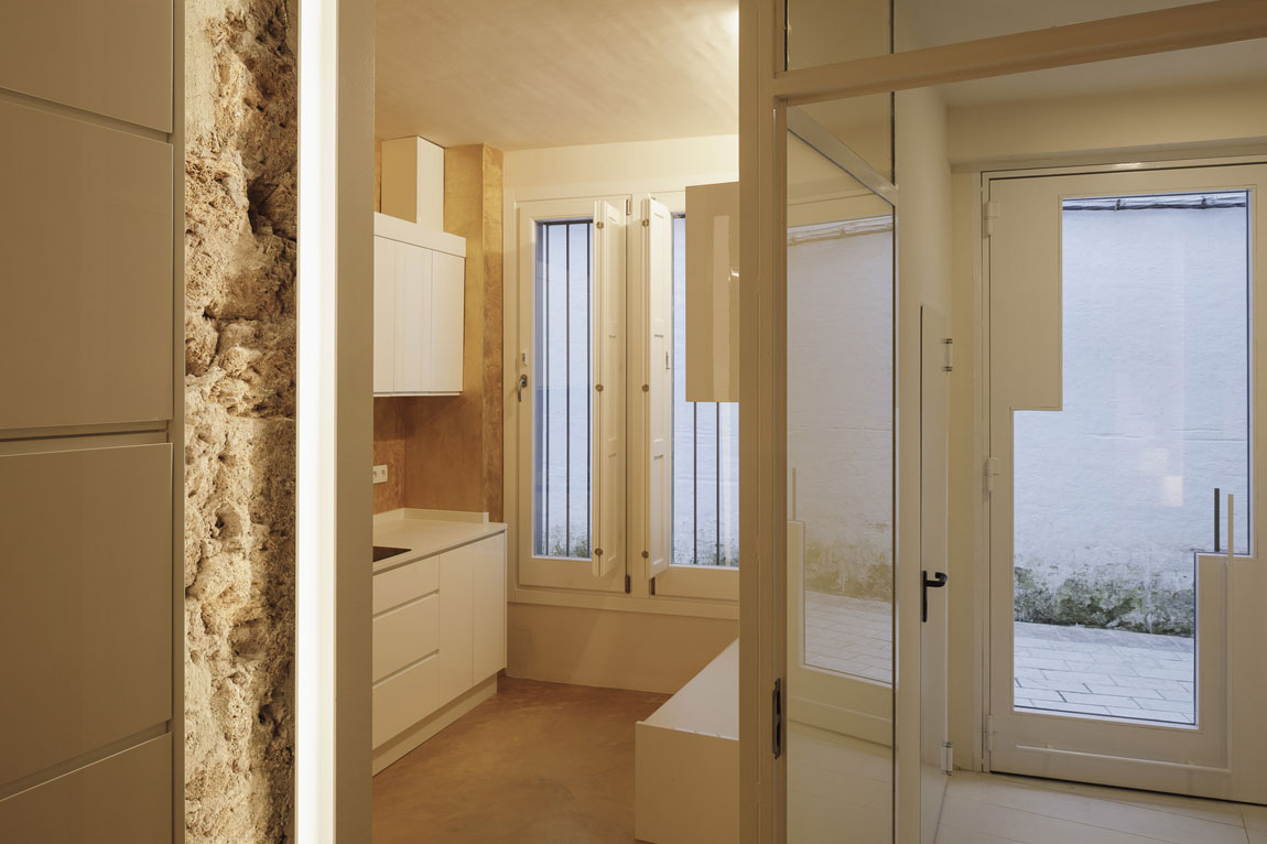 En relación directa con la tranquila calle, sin impedimento de acceso alguno, entraremos en una espacialidad acompañada en todo momento por la vivacidad de un suelo reflejo del sol, un patio donde la lluvia galopará en las ondulaciones de las verdes paredes, y el aire jugará con todo ello.