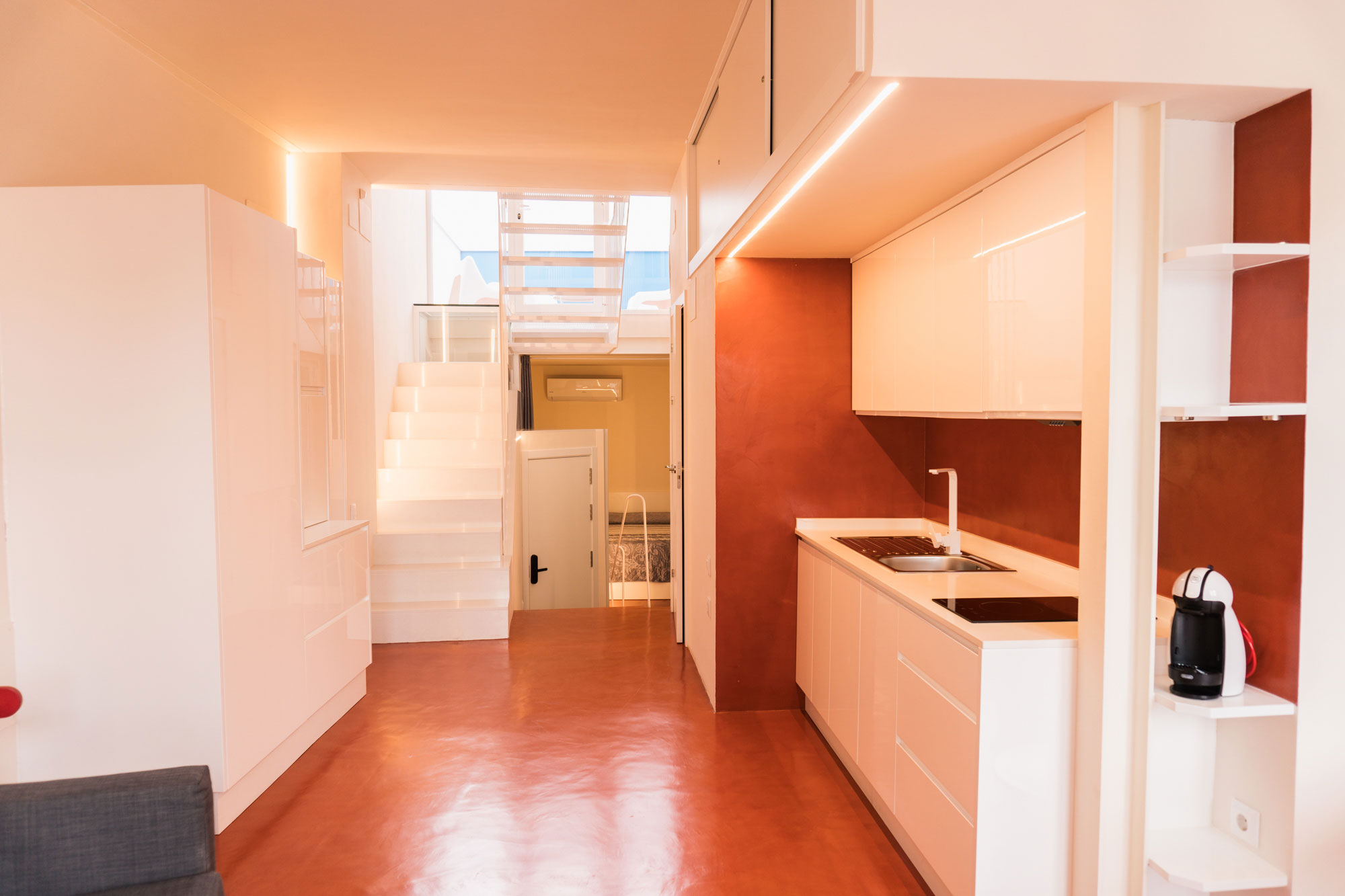 Tras atravesar el reloj de sol que es la escalera, accederá al cielo en donde hallará un espacio en el que flotar como una nube: subir, bajar; dilatarse, comprimirse; tener una relación especial con el agua y el vacío. Estar, e incluso, desaparecer.